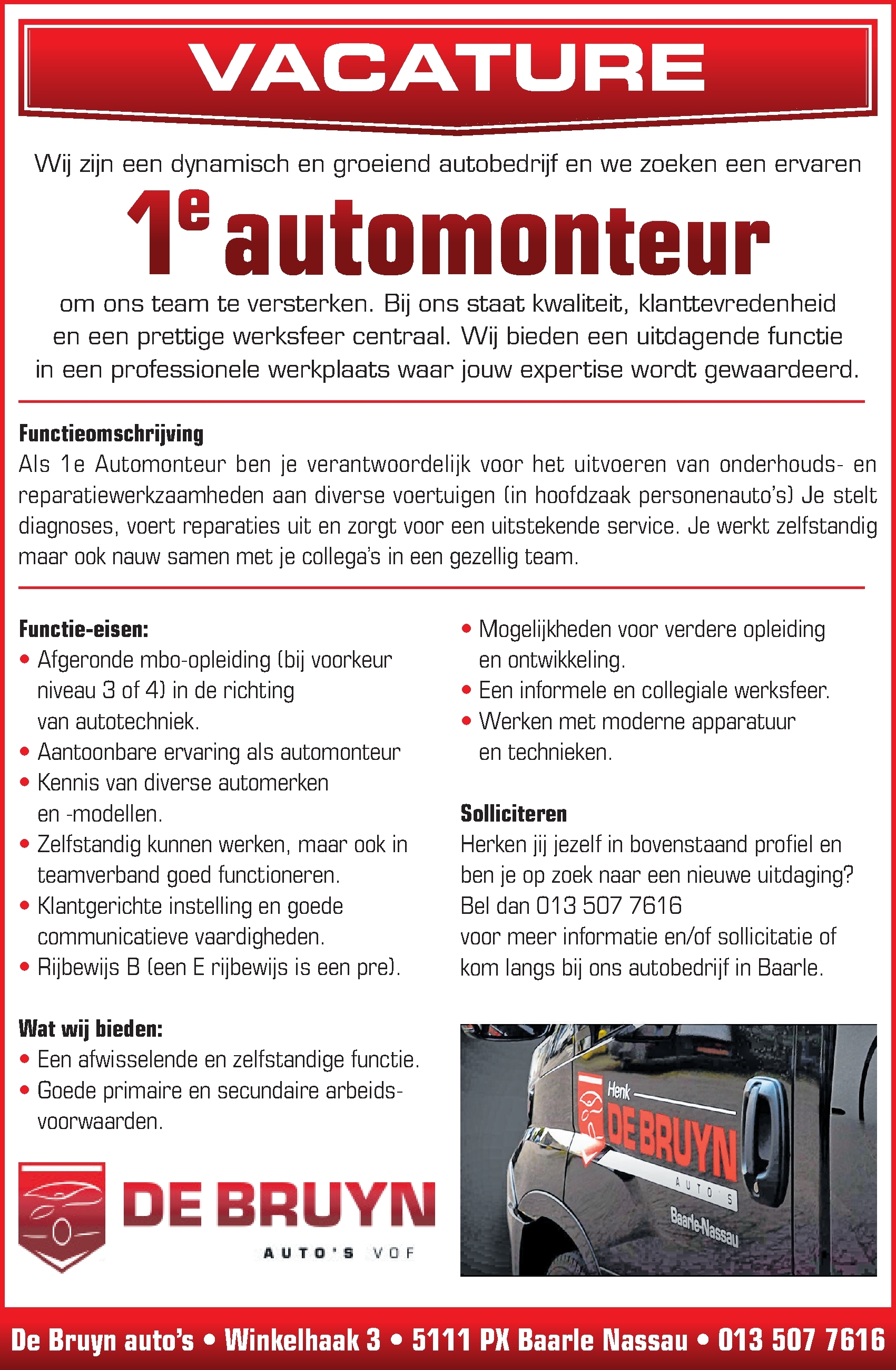 Contactpersoon: De Bruyn auto's VOF