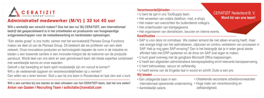 Contactpersoon: Ceratizit Nederland B.V.