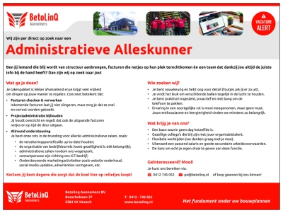 Je bent onze rots in de branding voor allerlei administratieve zaken, zoals: