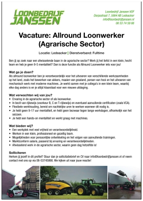 Als allround loonwerker ben je verantwoordelijk voor het uitvoeren van verschillende werkzaamheden