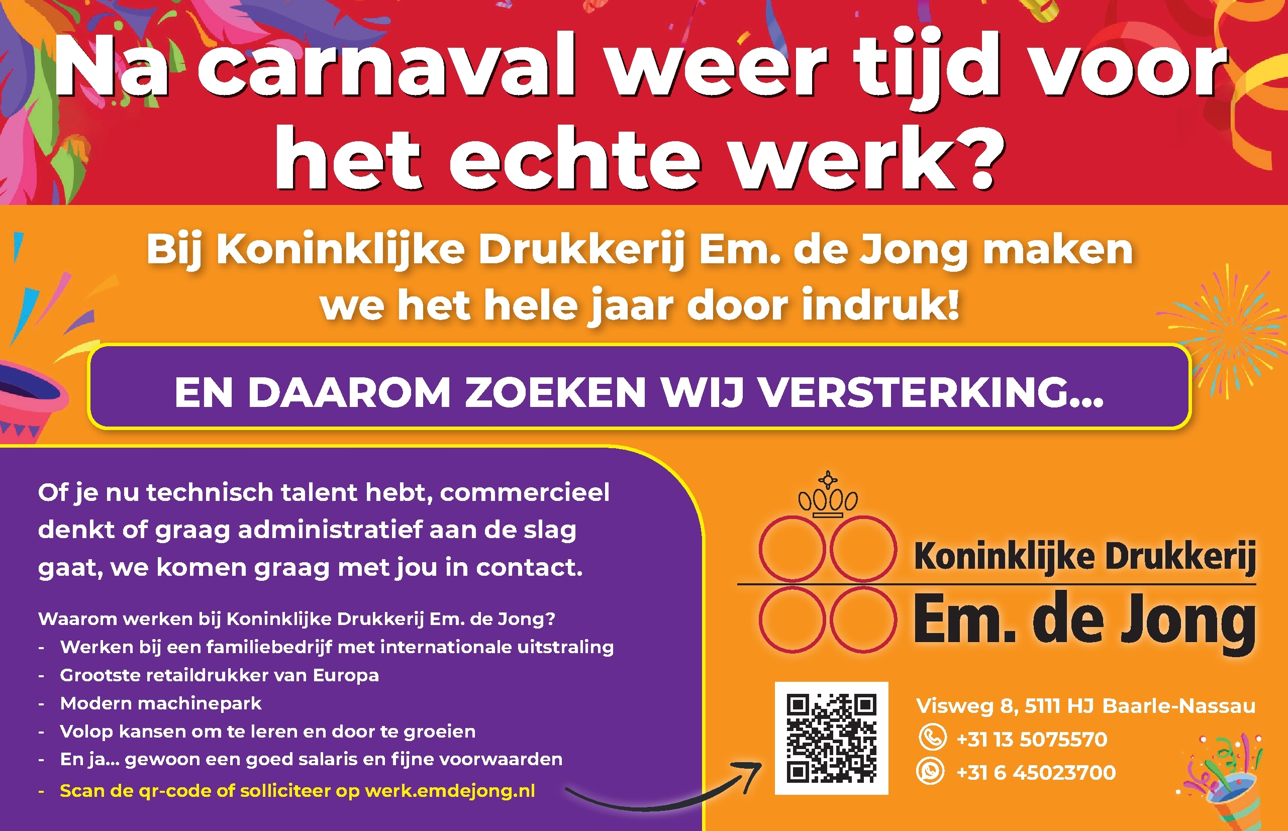 Contactpersoon: Koninklijke Drukkerij Em. de Jong