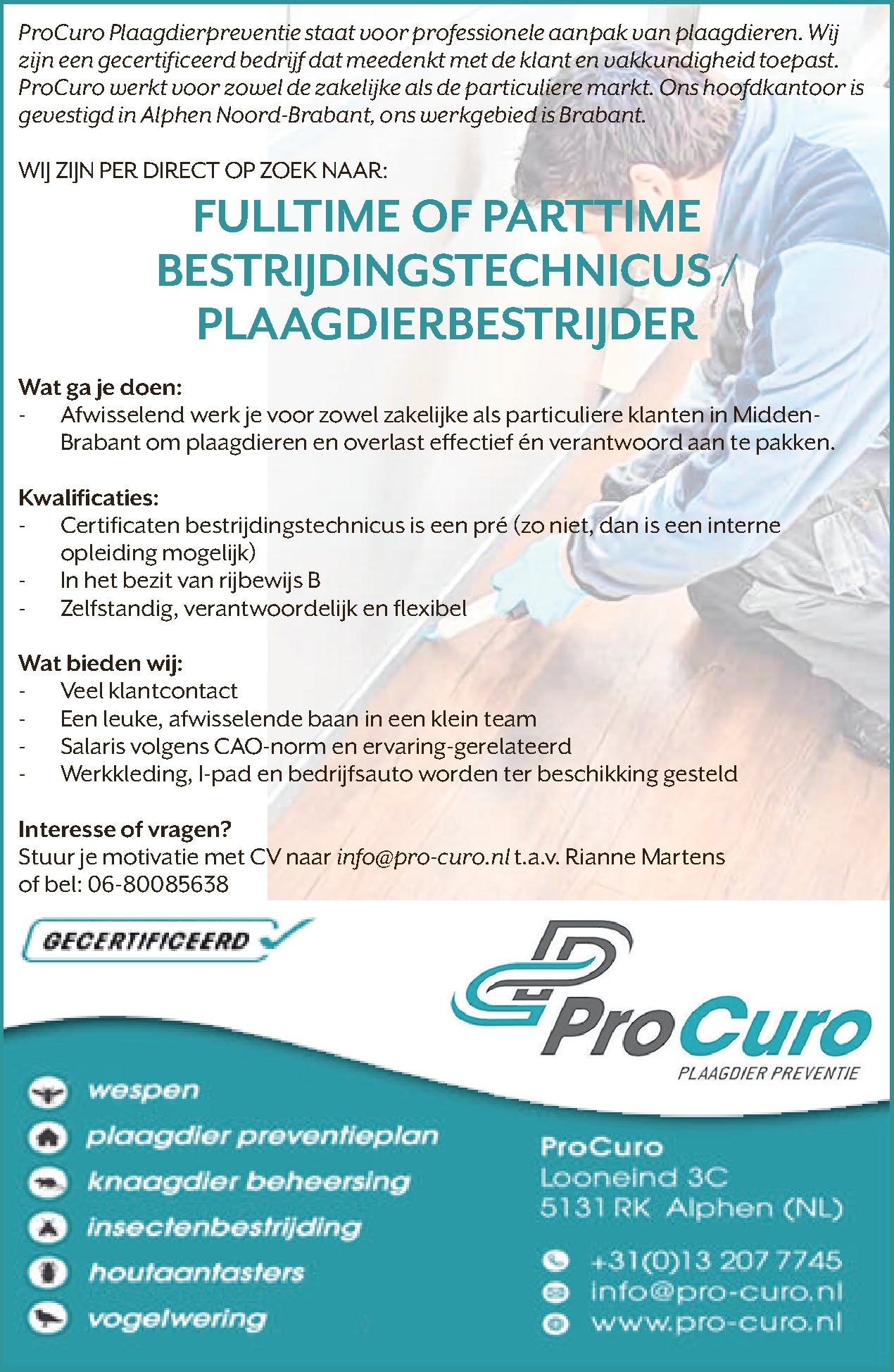 Fulltime of Parttime bestrijdingstechnicus Plaagdierbestrijder