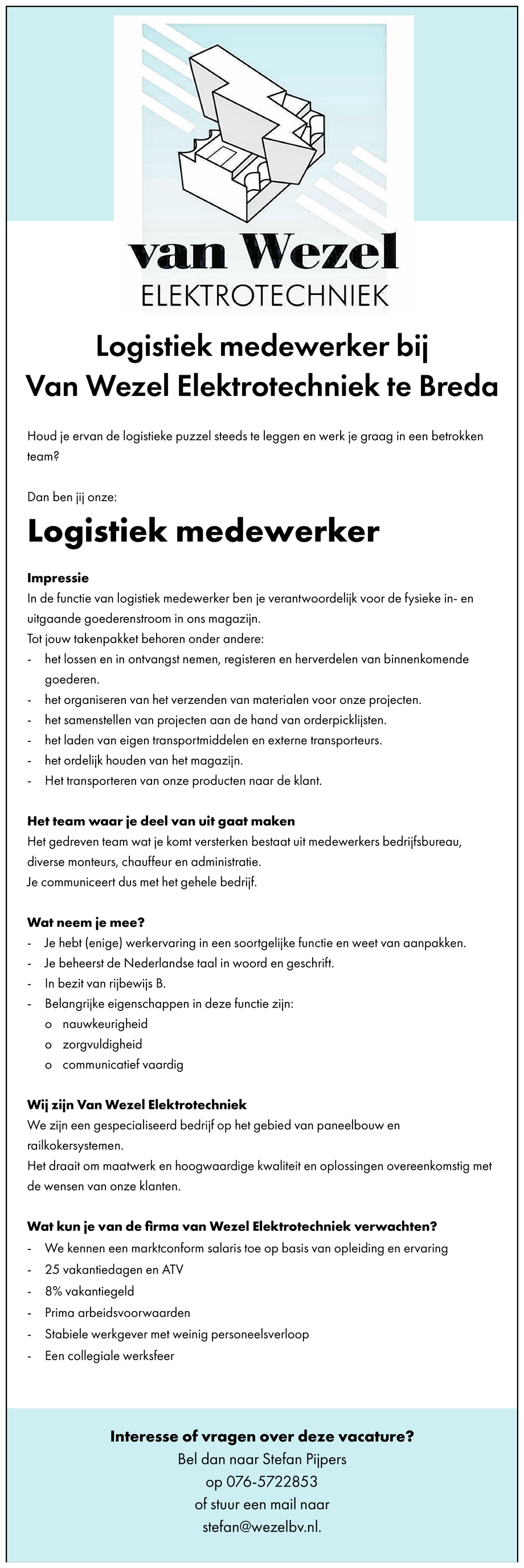 Contactpersoon: Van Wezel Elektrotechniek BV