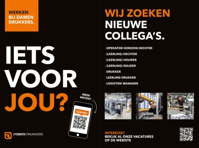 Operator Horizon hechter, (leerling) Hechter, (leerling) Vouwer, (leerling) Snijder, Drukker, Leerling drukker & Logistiek manager.