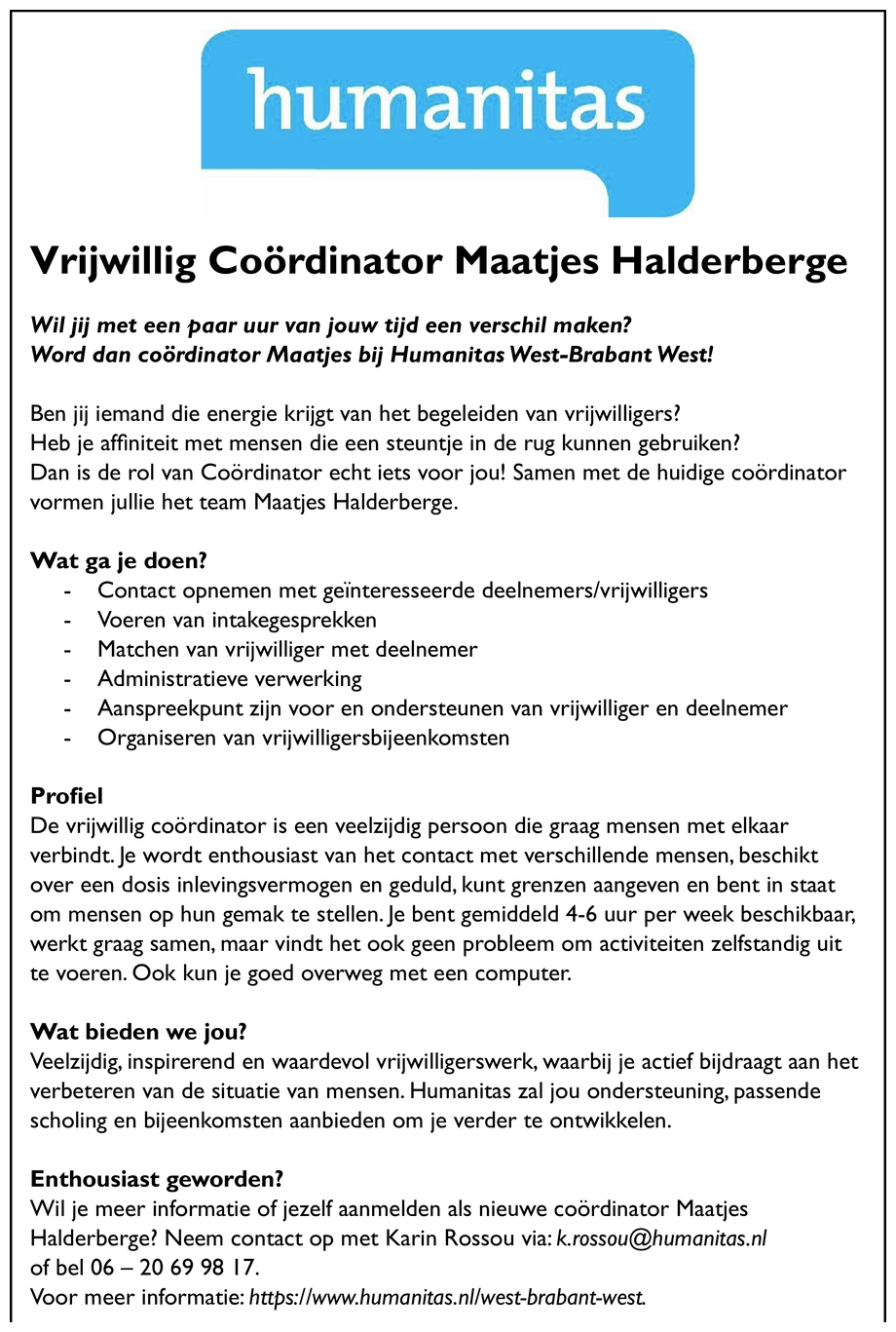 Contactpersoon: Humanitas West-Brabant West