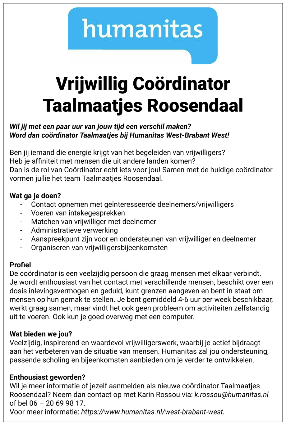 Contactpersoon: Humanitas Roosendaal