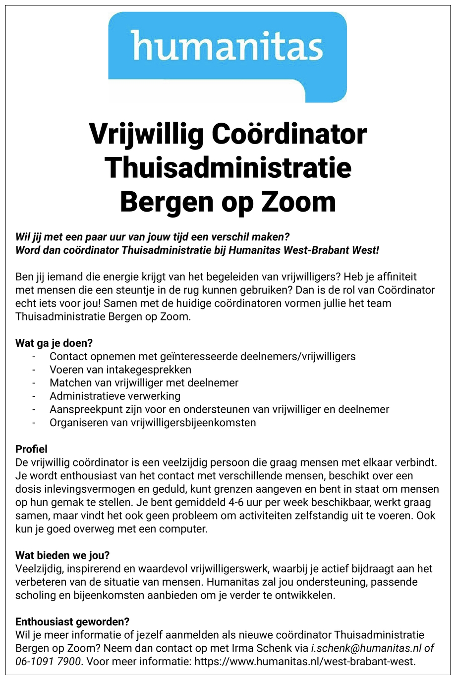 Contactpersoon: Humanitas West-Brabant West